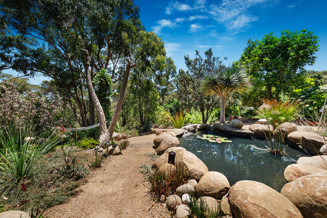 This sprawling 6-acre property in lush Dandenong Ranges surrounds required a cosy landscape to hug the home. Working with some long-established mature plants, we created step stones around the pool to mirror the natural landscape, raised the topography to create a level lawn area and framed it with complimentary plantings, and added granitic sand to create a firepit area and gentle pathways that invite people to explore.